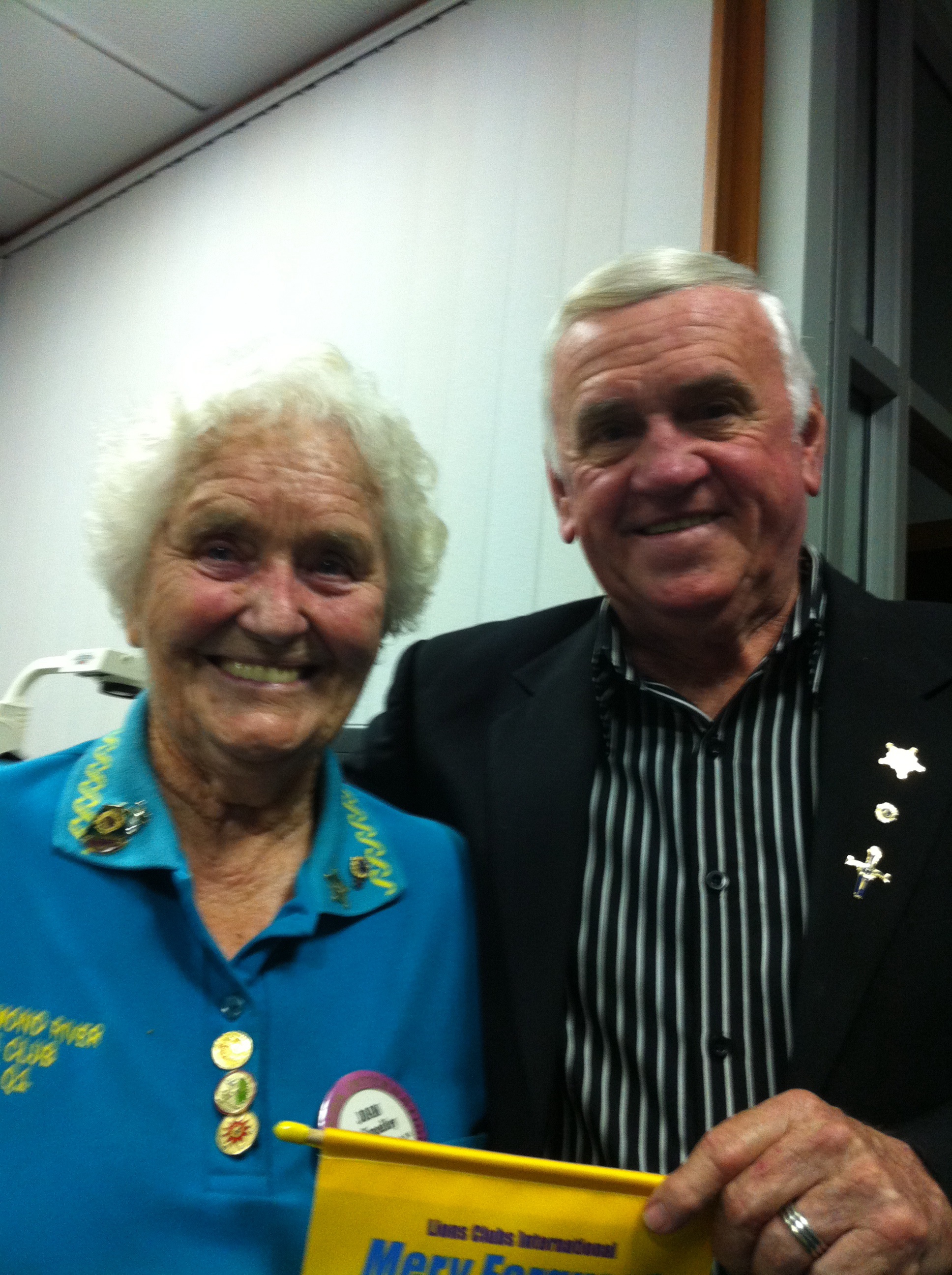 Joan Smedley who is president of Mid Richmond River Lions Club received an award of excellence from Lions District Governor Merv Ferguson for services to the lions club.